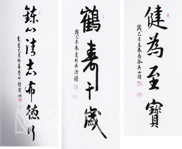 ȸÀå ¿ÀÄ¡¼® ¾¾´Â Çмöõ¼¼ (Çаú °°ÀÌ Ãµ¼ö¸¦ ´©¸®¶ó) ÆÈ¼øÀ» ³Ñ±ä ´Þ°üÇÑ °æÁö¸¦ ´À³¢°Ô ÇÏ´Â ÀÛǰÀ», ¿À»ê¿õ ¾¾´Â °ÇÀ§Áöº¸ (°Ç°Àº Áö±ØÇÑ º¸¹è´Ù) ÀÛǰÀ¸·Î °Ç°ÀÇ Á߿伺À» Àϱú¿öÁÖ´Â ÀÛǰÀ», Á¶ÈÖ¼ø ¾¾´Â ¿¬½ÉûÁöÆ÷´öÇàÀ̶ó´Â (¸¶À½À» ´Ü·ÃÇØ ¶æÀ» ¸¼°Ô ÇÏ°í ´öÀ» ³Î¸® ÇàÇ϶ó) ÀÛǰÀ» Àü½ÃÇß´Ù.