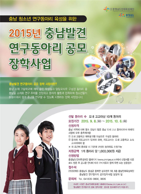 Ãæ³²À» ¿¬±¸ÇÏÀÚ! û¼Ò³â ¿¬±¸µ¿¾Æ¸® ÀåÇÐ±Ý ½ÅûÇϼ¼¿ä