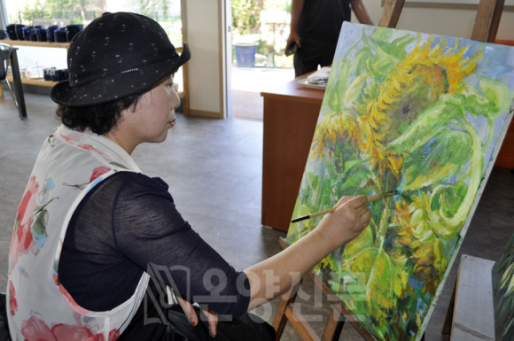 Á¦34ȸ ´ëÇѹα¹ ¹Ì¼ú´ëÀü ¼¾çÈ ºÎ¹® Ư»óÀ» Â÷ÁöÇÑ ¾Æ»êÀÇ ÀÚ¶û½º·¯¿î ÀÌÀºÈñ(62³â»ý) ÀÛ°¡¸¦ ¸¸³ª ÀÛ°¡¸¸ÀÇ ¼¼°è·Î µé¾î°¡ º¸¾Ò´Ù.