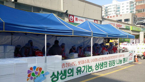 ±èÀå ³ª´® Çà»ç´Â û¾ç¿¡¼ »ý»êµÈ À¯±â³ó Àç·á¸¦ ÀÌ¿ë, µµ¿Í Ãæ³²Ä£È¯°æ³ó¾÷Àο¬ÇÕȸ, ·Ôµ¥½´ÆÛ ÀÓÁ÷¿øµéÀÌ ±èÄ¡¸¦ ¸¸µé¾î Àα٠ÇüÆíÀÌ ¾î·Á¿î ÀÌ¿ôµé¿¡°Ô Àü´ÞÇß´Ù.