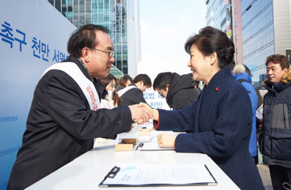 | | ¨Ï ¿Â¾ç½Å¹® | | ¹Ú±ÙÇý ´ëÅë·ÉÀº 1¿ù 18ÀÏ ºÎó ¾÷¹«º¸°í ÈÄ, ¹Î»ý ±¸Çϱâ ÀÔ¹ýÃ˱¸ õ¸¸ ¼¸í¿îµ¿¿¡ Âü¿©Çϱâ À§ÇØ ÆÇ±³ ¼¸íÀåÀ» ¹æ¹®ÇØ ÀÔ¹ýÃ˱¸ ¿¬¸íºÎ¿¡ ¼¸íÇÏ°í °ü°èÀÚµéÀ» °Ý·ÁÇß´Ù.