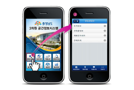 µµ ¸ð¹ÙÀÏ °ø°£Á¤º¸¼ºñ½º(http://n3dgis.chungnam.net)¸¦ ÀÌ¿ëÇÏ·Á¸é ¡®Ãæ³²µµ ¾Û¡¯¿¡¼ Àüü¸Þ´ºº¸±â-»ýȰ-°ø°£Á¤º¸¸¦ Ŭ¸¯ÇÏ¸é µÈ´Ù.