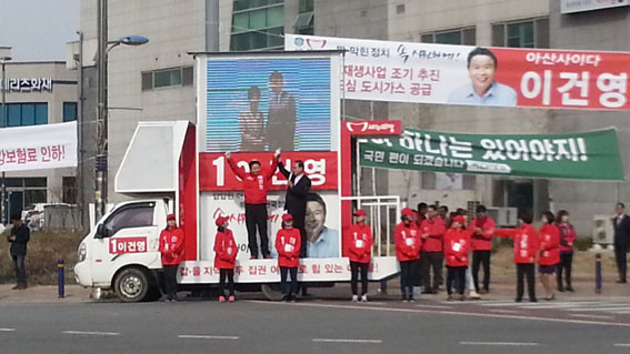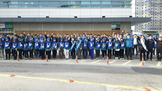 À̳¯ ¾Æ»ê½Ã ¡®°©¡¯¼±°Å±¸ÀÇ À̸í¼ö Èĺ¸¿Í ¡®À»¡¯¼±°Å±¸ÀÇ À̰ǿµ È帴 ´ç¿ø°ú ÁöÁöÀÚ µîÀÌ Ãѵ¿¿øµÈ °¡¿îµ¥ À¯¼¼Â÷¿Í ¼°Å¿îµ¿¿ø(À²µ¿´Ü)À» ¾Õ¼¼¿ì°í Ãâ±Ù±æÀÇ ½Ã¹Îµé¿¡°Ô ÁöÁö·Ñ È£¼ÒÇß´Ù.