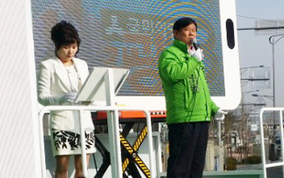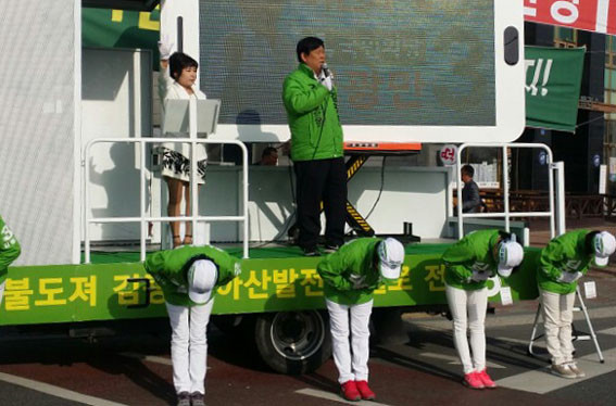 °°Àº ½Ã°¢ ´õºÒ¾î¹ÎÁÖ´çÀº °¢±â ´Ù¸¥ °÷¿¡¼ ¼±°Å¿îµ¿À» ½ÃÀÛÇß´Ù. ¾Æ»ê½Ã ¡®°©¡¯ÀÇ ÀÌÀ§Á¾ È帴 ¿Â¾ç°ü±¤È£ÅÚ ¾Õ »ç°Å¸®¿¡¼ ¼±°Å¿îµ¿¿øµé°ú ÇÔ²² Ãâ±Ù±æ ½Ã¹ÎµéÀ» ÇâÇØ ÁöÁö¸¦ È£¼ÒÇß°í, ¾Æ»ê¡®À»¡¯ÀÇ °Èƽà È帴 À̳¯ ù ÀÏÁ¤À¸·Î °æÁ¦ÁøÈï¿øÀ» ¹æ¹®ÇØ Ä§Ã¼µÈ °æÁ¦È¸º¹À» ±â¿øÇÏ´Â »ó¡ÀûÀÌ Çຸ¸¦ º¸¿´´Ù.