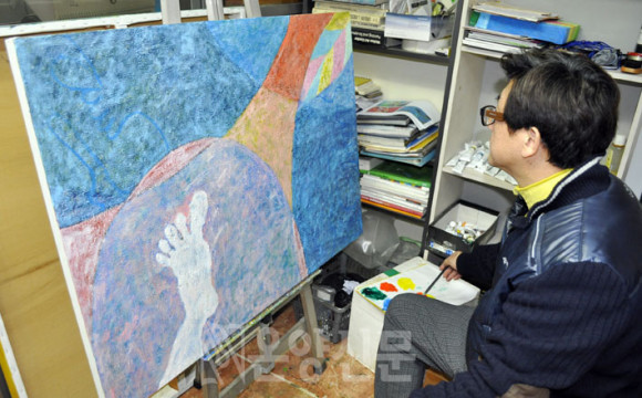 À̱¤ÈÆ ÁöºÎÀåÀº ¡°ÇÏÁö¸¸ ±×¸²À» ½±°Ô ´Þ¶ó°í ÇÑ´Ù. ¿¹¼ú°¡µé ÀÛǰÀ» ½±°Ô »ý°¢ÇÏ°í ±×·Á´Þ¶ó°í Çϸç Àç´É±âºÎ¸¦ ¿ä±¸Çϴµ¥ ½±Áö ¾ÊÀº ÀÏÀÌ´Ù. 3°³¿ù ²¿¹Ú °É¸° ÀÛǰÀº ³» ¿ù±ÞÀ̳ª ¸¶Âù°¡Áö´Ù¡±¸ç ¿¹¼ú°¡µéÀÇ °íÃæÀ» Åоî³õ´Â´Ù.