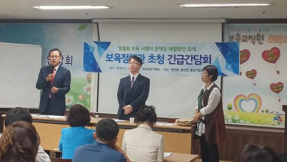 À̳¯ ÀǰßÀ» ÇÇ·ÂÇÑ ¿øÀåµéÀº ¹Î°£¾î¸°ÀÌÁý(°¡Á¤¾î¸°ÀÌÁý Æ÷ÇÔ)ÀÇ ¾î·Á¿òÀ» Åä·ÎÇßÀ¸¸ç, ÇöÀç ÁøÇàÇÏ·Á´Â ¸ÂÃãÇü º¸À°Á¤Ã¥Àº ÇöÀåÀÇ ½Ç»óÀ» ¿Ü¸éÇÑ Á¤Ã¥À̹ǷΠÀç°íÇØ¾ß ÇÑ´Ù°í Çß´Ù. ¶ÇÇÑ º¸À°¿¡ ÇÊ¿äÇÑ À°¾ÆÁö¿ø¼¾ÅÍ °Ç¸³À» ¿äûÇß´Ù.