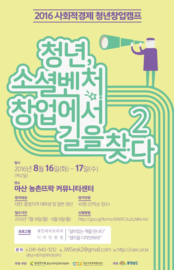 Ãæ³²¿¬±¸¿ø »çȸÀû°æÁ¦Áö¿ø¼¾ÅÍ´Â ¿À´Â 8¿ù 16ÀÏ~17ÀÏ(1¹Ú 2ÀÏ) ¾Æ»ê ³óÃ̶߶ô Ä¿¹Â´ÏƼ¼¾ÅÍ¿¡¼ ¿¸®´Â 2016 »çȸÀû°æÁ¦ û³â â¾÷Ä·ÇÁ Âü°¡ÀÚ¸¦ ¸ðÁýÇÑ´Ù°í ¹àÇû´Ù.