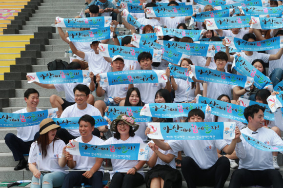 ƯÈ÷ Àαâ ÀÛ°î°¡ ±èÇü¼®ÀÌ À½¾Ç°¨µ¶À¸·Î Âü¿©ÇØ Àü±¹Ã¼Àü °³È¸½Ä¿¡´Â ±èÇü¼®ÀÇ ÇÇ¾Æ³ë ¹ÝÁÖ ¾Æ·¡ 500¿© ¸íÀÇ µµ¹ÎÇÕâ´ÜÀÌ ¡®Èñ¸ÁÀÇ ¾Æ¸®¶û¡¯À» ºÒ·¯ ±íÀº ¿©¿îÀ» ÁÙ °ÍÀ¸·Î ±â´ëµÈ´Ù.