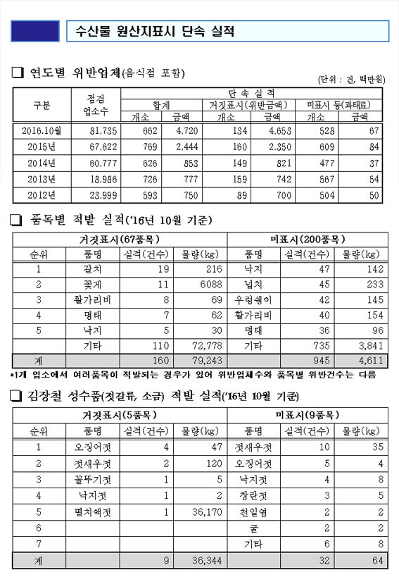 Ưº°´Ü¼Ó±â°£ µ¿¾È Ưº°»ç¹ý°æÂû°ü, Á¶»ç°ø¹«¿ø µî 1õ500¿©¸íÀ» ÅõÀÔÇÏ¿© »õ¿ìÁ£, ¸êÄ¡¾×Á£, °¥Ä¡¼ÓÁ£, »ý±¼, õÀÏ¿° µî ±èÀå¿ë ¼º¼öǰ Á¦Á¶¡¤À¯Åë¾÷¼Ò¸¦ ÁýÁß ´Ü¼ÓÇÑ´Ù.