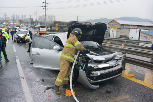 ÇöÀåÀ» Á¶»çÇѹٿ¡ ÀÇÇϸé Â÷·®ÀÇ ¿£Áø·ë ³»ºÎ ÀϺΰ¡ ¼Ò½ÇµÈ ÈÀç·Î ´ýÇÁÆ®·°°úÀÇ Ãßµ¹°úÁ¤¿¡¼ ¿£Áø·ëÀÌ ÈѼյǸç Àü¼± µîÀÌ ÇÕ¼±µÇ¾î ¹ß»ýÇÑ ÈÀç·Î ÃßÁ¤µÈ´Ù°í ¹àÇû´Ù.