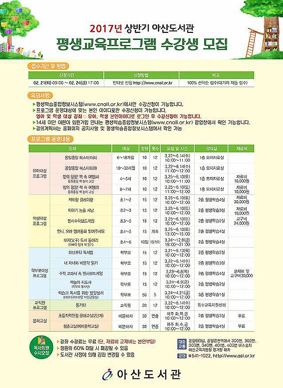 ¾Æ»ê±³À°Áö¿øÃ» ¾Æ»êµµ¼°ü(°üÀå ¹Ú¼ø±Ô)´Â 2¿ù 21ÀϺÎÅÍ 24ÀϱîÁö ÀÌ¿ëÀÚ ¸ÂÃãÇü Æò»ý±³À° ÇÁ·Î±×·¥ 15°³ °Á ¼ö°»ýÀ» ¸ðÁýÇÑ´Ù.
