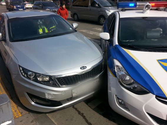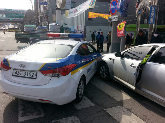À̸¦ ¼ÕºÀÈñ °æÀ§´Â ´çÀå Â÷·®À» ¼¼¿ìÁö ¸øÇϸé ÁÖº¯ Àεµ¿¡ ÀÖ´Â º¸ÇàÀÚµéÀÌ ÇÇÇØ¸¦ ÀÔÀ» °ÍÀ̶ó°í ÆÇ´Ü, ¼øÂûÂ÷¸¦ ÀÌ¿ëÇØ Áß¾Ó¼±À» ³Ñ¾î ´ë»ó Â÷·®ÀÇ ¾ÕÀ» ¼øÂûÂ÷ÀÇ Á¶¼ö¼® ºÎºÐÀ¸·Î °¡·Î¸·¾Æ Â÷·®À» ¸ØÃç ¼¼¿î ÈÄ °ð¹Ù·Î Â÷·®ÀÇ ½Ãµ¿À» ²°´Ù.