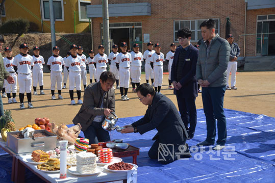 ¿Â¾ç¿ÂõÃʵîÇб³(±³Àå ÀÓ¿ë±Ô)´Â Áö³ 3¿ù 4ÀÏ ¿ÀÀü ÀÌ Çб³ ¾ß±¸Àå¿¡¼ 2017Çг⵵ ¾ß±¸ºÎÀÇ °Ç½Â°ú ¾ÈÀüÀ» ±â¿øÇÏ´Â ±â½ÂÁ¦¸¦ °¡Á³´Ù.