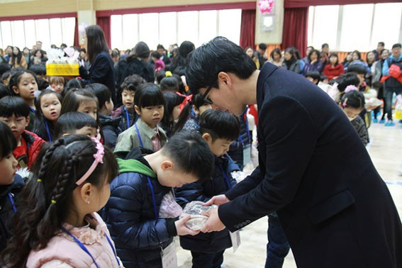 9¸íÀÇ ´ãÀÓ¼±»ý´ÔµéÀÌ ÇÔ²² ÁغñÇÑ Ãà½Ã°¡ À̾îÁ³°í, ÇÑ ¸í ÇÑ ¸í ¾È¾ÆÁÖ¸ç Á¤¼º²¯ Æ÷ÀåÇÑ ¼±¹°À» Àü´ÞÇÏ´Â ½Ã°£À» °¡Á³´Ù.
