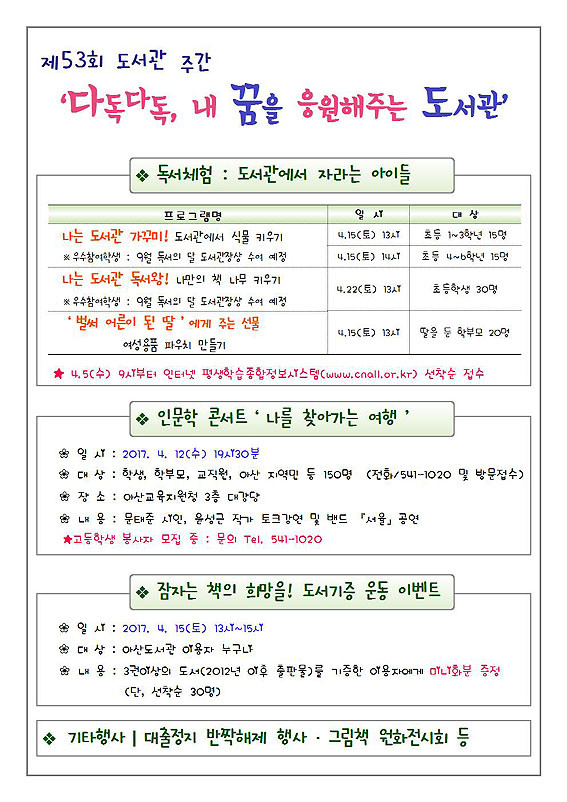 ¾Æ»ê±³À°Áö¿øÃ» ¾Æ»êµµ¼°ü(°üÀå ¹Ú¼ø±Ô)´Â Á¦53ȸ µµ¼°üÁÖ°£(4¿ù 12~18ÀÏ)À» ¸ÂÀÌÇØ 4¿ù ÇÑ ´Þ°£ ´Ùä·Î¿î µµ¼°ü ¹®È Çà»ç¸¦ ¿î¿µÇÑ´Ù.