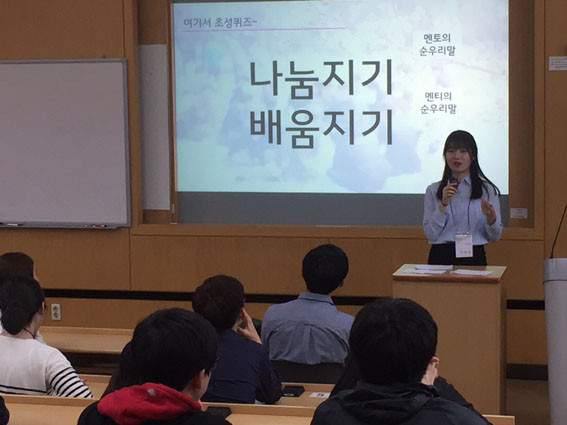 ÄÉÀÌ-¿¤ÀÌÆ¼ ÆÀ¿ø 13¸íÀº Ãæ³² ¿µÀçÇлýµéÀ» ÃÊÃ»ÇØ ¿¬ 4ȸ KAIST º»¿ø¿¡¼ ¸é´ë¸é ÇÁ·Î±×·¥À» ¿î¿µÇϰí, Æò»ó½Ã¿¡´Â À¯¼± »ó´ãÀ¸·Î µçµçÇÑ ¸àÅä ¿ªÇÒÀ» º´ÇàÇÏ°Ô µÈ´Ù.