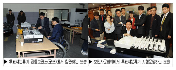 Áö³ 2¿ù 28ÀÏ, Á¤´ç¡¤½Ã¹Î´Üü¡¤ÇÐȸ¡¤¾ð·ÐÀÎ µî 16¸íÀ¸·Î ±¸¼ºµÈ °³Ç¥»ç¹«Âü°ü´ÜÀº °æ±â ±ºÆ÷½Ã¿¡ À§Ä¡ÇÑ ÅõÇ¥ÁöºÐ·ù±â º¸°ü¼Ò¸¦ ¹æ¹®ÇØ Á÷Á¢ ÅõÇ¥ÁöºÐ·ù±â º¸°ü¡¤Á¡°Ë »óȲÀ» È®ÀÎÇß´Ù. 4¿ù 6ÀÏ¿¡´Â º¸¾ÈÀÚ¹®È¸ÀÇ¿¡ Âü¼®ÇØ °ü·Ã Àü¹®°¡¿Í ÇÔ²² ÅõÇ¥ÁöºÐ·ù±â º¸¾Èü°èÀÇ ¹«°á¼ºÀ» °ËÁõÇß´Ù.