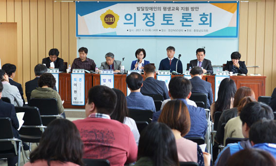Ãæ³²µµÀÇȸ´Â 4¿ù 13ÀÏ Ãµ¾È½Ã NGO¼¾ÅÍ¿¡¼ ¡®¹ß´ÞÀå¾ÖÀÎÀÇ Æò»ý±³À° Áö¿ø ¹æ¾È°ú Á¶·Ê Á¦Á¤ÀÇ Çʿ伺¡¯À» ÁÖÁ¦·Î ÇÑ ÀÇÁ¤Åä·Ðȸ¸¦ °³ÃÖÇß´Ù°í ¹àÇû´Ù.