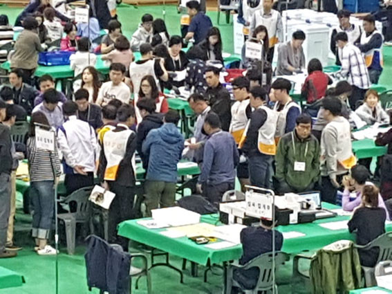 ¾Æ»ê½Ã´Â À̹ø ´ë¼±¿¡¼ ÃÑ ¼±°ÅÀμö 23¸¸ 6õ407¸í Áß 17¸¸ 3õ797¸íÀÌ Âü¿©ÇØ 73.5%ÀÇ ÅõÇ¥À²À» º¸¿´´Ù. ÀÌ´Â Áö³ Á¦15´ë ´ëÅë·É¼±°Å(75.8%) ÀÌÈÄ °¡Àå ³ôÀº ÅõÇ¥À²ÀÌÁö¸¸, »ç»ó ÃÖ°í¸¦ ±â·ÏÇß´ø »çÀüÅõÇ¥À²¿¡ ÈûÀÔ¾î ÃÖ°í±â·ÏÀ» °æ½ÅÇÒ °ÍÀÌ¶ó´ø ±â´ë¿Í ÃßÃøÀ» ¹þ¾î³µ´Ù.