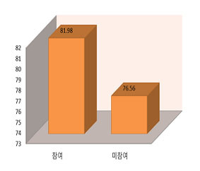 ¶ÇÇÑ, Æò»ý±³À°¿¡ Âü¿©ÇÏ´Â Ãæ³²µµ¹ÎÀÇ Çູµµ´Â 82Á¡À¸·Î, Âü¿©ÇÏÁö ¾ÊÀº µµ¹ÎÀÇ Çູµµ 77Á¡ º¸´Ù 5Á¡À̳ª ³ôÀº °ÍÀ¸·Î ³ªÅ¸³µ´Ù.