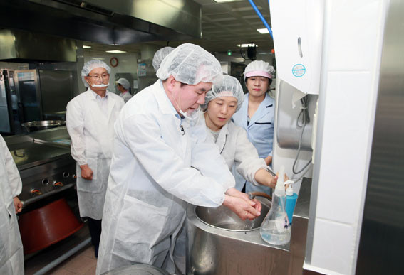 ±è ±³À°°¨Àº ±Þ½Ä Á¶¸®½Ç°ú ½Ä´ç ½Ã¼³ ¹× ±â±¸ÀÇ Ã»°á»óŸ¦ ±¸¼®±¸¼® »ìÆìº¸°í, Á¶¸®¿øµéÀÇ ÀÛ¾÷°úÁ¤ µîÀ» ²Ä²ÄÈ÷ È®ÀÎÇßÀ¸¸ç, ÈÀç µî ¾ÈÀü»ç°í¿Í Á¾»çÀÚµéÀÇ ±Ù°ñ°Ý°èÁúȯ ¿¹¹æ°ü¸®¿¡µµ °ü½ÉÀ» °¡Á® ÁÙ °ÍÀ» ÀØÁö ¾Ê°í ´çºÎÇß´Ù.