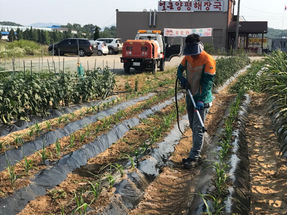 ÅÁÁ¤¸é µ¿»ê2¸® ÀÌ¿µÈ¯ ÀÌÀåÀº ¡°³óÀÛ¹°ÀÌ ¸Þ¸»¶ó °¡´Â °ÍÀ» º¸°í ¸é»ç¹«¼Ò¿¡ µµ¿òÀ» ¿äûÇÏÀÚ Áï½Ã »êºÒÁøÈÂ÷·®¿¡ ¹°À» ½Æ°í ¿Í¼ ³óÀÛ¹°¿¡ Á÷Á¢ ¹°À» °ø±ÞÇÏ´Â °ÍÀ» º¸°í ºñ·Ï ÃæºÐÈ÷ ³óÀÛ¹°¿¡ ¹°À» °ø±ÞÇÒ ¼ö´Â ¾øÁö¸¸ ³ó¹ÎµéÀÇ ¼Ó Ÿ´Â ¸¶À½À» ÀÌÇØÇÏ°í ³ó¹ÎµéÀÇ ¾î·Á¿òÀ» ÇØ¼ÒÇϱâ À§ÇØ ³ë·ÂÇÏ´Â ¸ð½À¿¡ ÁøÁ¤ °¨»çÇÑ´Ù¡± °í ¸»Çß´Ù.