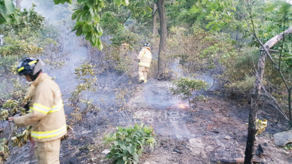 28ÀÏ ¿ÀÈÄ 6½Ã°æ ±¹µµ¸¦ Áö³ª´ø Áֹο¡ ¡®»ê¿¡¼ ¿¬±â°¡ ³´Ù¡¯´Â ½Å°í¸¦ ¹Þ°í Ã⵿ÇÑ »ê¸² ´ç±¹Àº °ð¹Ù·Î ÁøÈ ÀÛ¾÷À» ÆîÃÄ ¹Ì¹ÌÇÑ ÇÇÇØ¸¦ ³»´Âµ¥ ±×Ä¡°í »ê¸² Á÷¿øµé¿¡ ÀÇÇØ 9½Ã°æ ÀܺұîÁö ¿ÏÀüÈ÷ ÁøÈ µÆ´Ù.