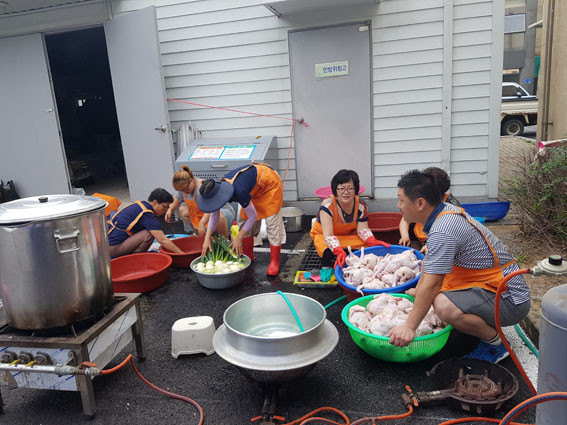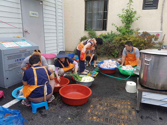 ¿Â¾ç5µ¿ ÇູŰ¿ò ÃßÁø´ÜÀÌ Á÷Á¢ »ï°èÅÁ Àç·á¸¦ ±¸ÀÔÇØ »õº®ºÎÅÍ À½½ÄÀ» ¼ÕÁúÇϰí, Á¶¸®ÇØ À帶¿Í ÇÔ²² ã¾Æ¿Â ¹«´õÀ§¿¡ ÁöÄ£ ¾î¸£½Åµé°ú Àå¾ÖÀε鿡°Ô ¿©¸§ °Ç°À» ì±â½Ã¶ó°í Ãʺ¹ ¸ÂÀÌ º¸¾çÀ½½ÄÀ» ¸¶·ÃÇØ °úÀϰú ÇÔ²² ÀüÇØµå·È´Ù.
