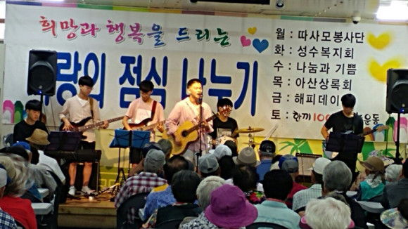ÀÌ¾î ¾Æ»ê»ó·Ïȸ(ȸÀå ¹Úżø)¿¡¼ ¿î¿µÇÏ´Â »ç¶ûÀÇ Á¡½É ³ª´©±â °æ·Î±Þ½ÄȰµ¿À¸·Î ½ÄŹ Á¤¸®, ¾î¸£½Å ¾È³», ¾È¸¶, À½½Ä Á¶¸® µµ¿ì¹Ì, ³ë·¡, ¹è½Ä, û¼Ò µîÀÇ ºÀ»ç Ȱµ¿À» ÁøÇàÇÏ¿´´Ù.