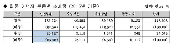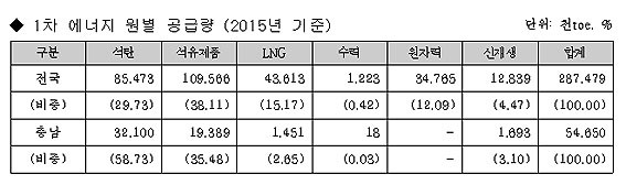 ¿ë¿ª ¼öÇà ±â°üÀÎ Ãæ³²¿¬±¸¿øÀÌ Á¦ÃâÇÑ Áß°£ º¸°í¼¿¡ µû¸£¸é, 2015³â ±âÁØ µµ³» 1Â÷ ¿¡³ÊÁö °ø±Þ·®Àº 5õ465¸¸toe(¼®À¯È¯»êÅæ)·Î Àü±¹¿¡¼ °¡Àå ¸¹¾Ò´Ù.