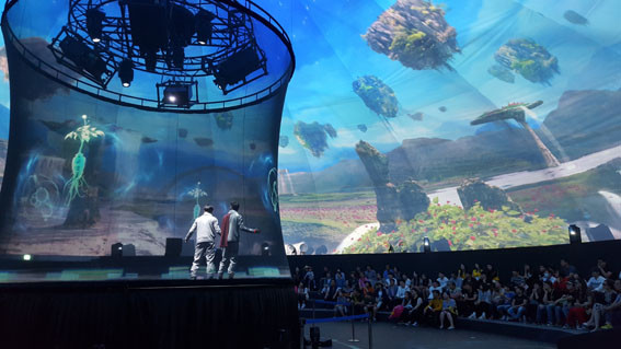 ±×Áß¿¡¼µµ ½´ÆÛǪµå ÀλïÀ» ã¾Æ ¿ìÁÖ¸¦ ¿©ÇàÇÏ´Â ¿ìÁÖÀÎÀÇ ¿©Á¤À» ±×¸° ¡®¿µ»ó°ü¡¯Àº Áö¸§ 30m ´ëÇü µ¼¿¡¼ 360µµ ¼Å¬ Ȧ·Î±×·¥ ¿µ»óÀ» ¼±º¸¿© ÀþÀº Ãþ °ü¶÷°´µé¿¡°Ô Å« Àα⸦ ²ø°í ÀÖ´Ù.