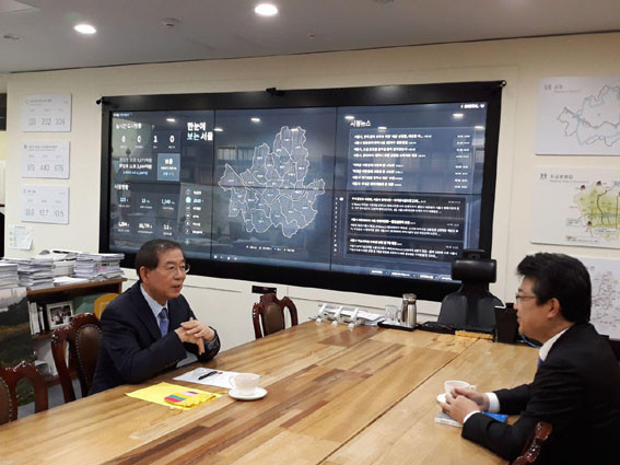 ¼¿ï·Î À̵¿ÇÑ º¹ Àü ½ÃÀåÀº ÃкÒÇõ¸íÀÇ »ó¡ÀÎ ±¤È¹® ±¤ÀåÀ» µÑ·¯º¸°í ¼¿ï½ÃûÀ» ã¾Æ ¹Ú¿ø¼ø ½ÃÀå°ú ȯ´ãÀ» °¡Á³´Ù. ÀÌ ÀÚ¸®¿¡¼ ¹Ú ½ÃÀåÀº ¼¿ï½ÃÁ¤¿¡ ´ëÇÑ ¿©·¯ ¾ÆÀ̵ð¾î¸¦ ¼³¸íÇß°í, ÀÌ¾î °³Çå Á¤±¹¿¡ ´ëÇÑ ÀǰßÀ» ³ª´³´Ù.