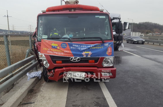 ¾Æ»ê¼Ò¹æ¼¿¡ µû¸£¸é 3¿ù 30ÀÏ ¿ÀÀü 9½Ã46ºÐ °æ ¾Æ»ê½Ã µÐÆ÷¸é ½Å³²¸® ±¹µµ 43È£¼± ½Å¹ý2±³ ÀÚµ¿Â÷Àü¿ëµµ·Î ºÎ±Ù¿¡¼ 25Åæ Æ®·°ÀÌ ¾Æ»ê¼Ò¹æ¼ ¼Ò¼Ó ¼Ò¹æ(ÁßÇü)ÆßÇÁÂ÷¸¦ Ãßµ¹ÇØ ÀÌ Â÷¿¡¼ µ¿¹°±¸Á¶¸¦ ÁغñÇϰí ÀÖ´ø ±¸±Þ´ë¿ø Áß 3¸íÀÌ ¼ûÁö°í 1¸íÀÌ ºÎ»óÀ» ´çÇß´Ù.