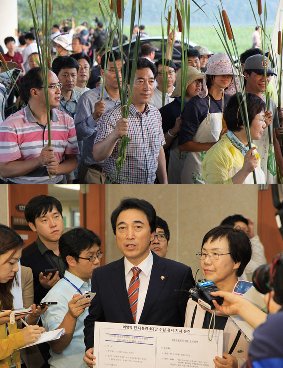 ¡ã2013³â ±¹Á¤°¨»ç¸¦ ÁغñÇÏ´Â °úÁ¤¿¡¼ 4´ë° »ç¾÷ÀÇ Áø½ÇÀ» ±Ô¸íÇØÁÙ ±¹ÅäºÎÀÇ ³»ºÎ ºñ¹Ð¹®¼¸¦ ÀÔ¼öÇß´Ù. ¹Ú¼öÇöÀº 2013³â 10¿ù ±¹È¸ Á¤·Ð°ü¿¡¼ ±âÀÚȸ°ßÀ» ¿°í 4´ë°»ç¾÷ ºñ¹Ð¹®¼ÀÇ ³»¿ëÀ» °ø°³Çß´Ù.