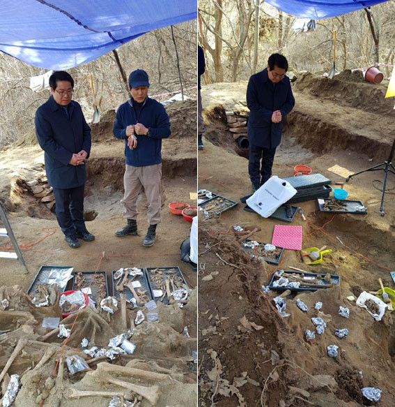 À¯ÇØ ¹ß±¼ÇöÀåÀ» ãÀº ¿À ¿¹ºñÈ帴 ¡°Çѱ¹ÀüÀï ½Ã±â¿¡ ºÎ¿ª ÇøÀÇ¿Í ±× °¡Á·À̶ó´Â ÀÌÀ¯¸¸À¸·Î Àû¹ýÇÑ ÀýÂ÷ ¾øÀÌ Èñ»ýµÈ ºÐµéÀÇ À¯ÇØ ¹ß±¼ ¹× ºÀ¾ÈÀº ¹Ì·ê ¼ö ¾ø´Â ½Ã´ëÀû °ú¾÷¡±ÀÓÀ» Àû½ÃÇϸç, ¡°¿ÏÀüÇÑ À¯ÇØ ¹ß±¼À» ÅëÇØ À¯°¡Á·µéÀÇ »óó¸¦ Ä¡À¯ÇÏ°í ¿ª»çÁ¤ÀÇ ½ÇÇö°ú »çȸ ÅëÇÕ¿¡µµ ±â¿©ÇØ¾ß ÇÑ´Ù¡±°í °Á¶Çß´Ù.