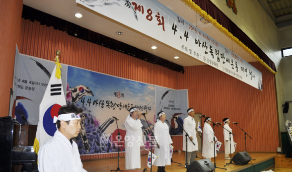 | | ¡è¡è Á¦8ȸ 4.4 ¾Æ»êµ¶¸³¸¸¼¼¿îµ¿ ±â³äÇà»ç¿¡¼ ¸¸¼¼ »ïâÀ» Çϰí ÀÖ´Ù. | ¨Ï ¿Â¾ç½Å¹® | | Á¦8ȸ 4.4¾Æ»êµ¶¸³¸¸¼¼¿îµ¿ ±â³äÇà»ç°¡ ¿Â¾ç¹®È¿ø(¿øÀå Á¤Á¾È£)°ú ±¤º¹È¸¾Æ»ê¿¹»ê¿¬ÇÕÁöȸ(ȸÀå Á¤Çذï)ÀÇ ÁÖ°üÀ¸·Î 4¿ù 4ÀÏ ¼±µµÁßÇб³¿¡¼ °³ÃֵƴÙ.