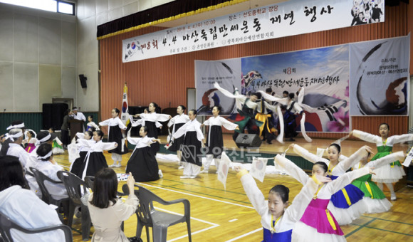 ¶ÇÇÑ ÆÛÆ÷¸Õ½º °ø¿¬À¸·Î ÀÏÁ¦ÀÇ Åº¾Ð¿¡ ±¼ÇÏÁö ¾Ê°í ¸ñ¼û ¹ÙÃÄ µ¶¸³¿îµ¿À» ÆîÄ£ ¿µ¿õµéÀ» ±â¸®¸ç È£±¹Á¤½ÅÀ» Àϱú¿ì´Â ¡®¾Æ»êÀÇ ¿Üħ¡¯ ÁÖÁ¦·Î ¾Æ»ê¾î¸°À̹«¿ë´Ü ¹ö¼±ÄÚÀÇ °ø¿¬, ¼±µµÁßÇб³ ¼ÛÇý¿ø ÇлýÀÇ ¡®±¸±¹ÀÇ ÇÞºÒ 4.4µ¶¸³¸¸¼¼¿îµ¿¡¯ Çå½Ã³¶µ¶, Á¤ÇØ°ï ±¤º¹È¸ ¾Æ»ê¿¹»ê¿¬ÇÕÁöȸÀåÀÇ µ¶¸³¼±¾ð¼ ³¶µ¶, ÀÌ»óµæ ¹®È°ü±¤°úÀåÀÇ ¸¸¼¼»ïâ ¼øÀ¸·Î ÁøÇàµÆ´Ù.