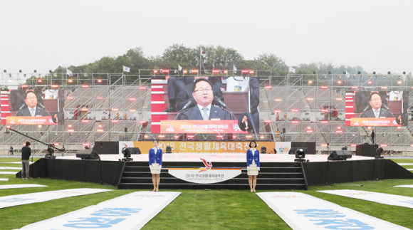¡®2018Àü±¹»ýȰüÀ°´ëÃàÀü¡¯ °³È¸½ÄÀÌ 11ÀÏ Ãæ³² ¾Æ»ê À̼ø½ÅÁ¾ÇտÀå ÁÖ°æ±âÀå¿¡¼ ¡®Ç°¾î¶ó Çàº¹Ãæ³², ¶Ù¾î¶ó ´ëÇѹα¹¡¯À» ÁÖÁ¦·Î °³ÃֵƴÙ.