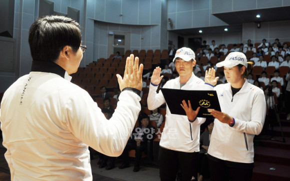 °á´Ü½Ä¿¡¼ ±è¼®°â ÃѰ¨µ¶Àº ¡°°æ±â ³»³» °ÀÎÇÑ Á¤½Å·ÂÀ¸·Î °á¿¬ÇÏ°Ô °æ±â¿¡ ÀÓÇϰí, Á¤Á÷ÇÑ ÆÐ¹è¿¡ ºÎ²ô·¯¿öÇÏÁö ¾Ê°í °â¼ÕÇÏ¸ç ¼º¼÷ÇÑ ½ºÆ÷Ã÷ Á¤½ÅÀ» ¹ßÈÖÇϰڴ١±¸ç ¡°¼±¼ö´Ü ¸ðµÎ´Â ¾Æ»ê½Ã¹ÎÀÇ ¼º¿øÀ» °¡½¿¿¡ »õ±â¸ç Àº±Ù°ú ²ö±âÀÇ ±â»óÀ» À¯°¨¾øÀÌ ¹ßÈÖÇÏ°í µ¹¾Æ¿À°Ú´Ù¡±°í Çß´Ù.