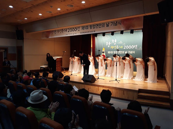 ½Ç³» ±â³ä½Ä ÀÌÈÄ ÅÁÁ¤¸é ÇàÁ¤º¹Áö¼¾ÅÍ ¾Õ¿¡ ¸¶·ÃµÈ ±â³ä½Ä¼ö(30³â ¹Ý¼Û) Ç¥Áö¼® Á¦¸·Çà»ç¸¦ ³¡À¸·Î Á¦9ȸ ¸é¹ÎÀÇ ³¯Àº ¼ºÈ²¸®¿¡ ¸¶ÃÆ´Ù.