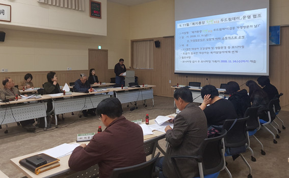 | | ¡è¡è ¡ã¿Â¾ç1µ¿ ÅëÀåȸÀÇ ½Ã ¡®ÇູŰ¿ò µÎµå¸²µ¥ÀÌ¡¯ ³íÀÇÇÏ´Â ¸ð½À | ¨Ï ¿Â¾ç½Å¹® | | ¾Æ»ê½Ã ¿Â¾ç1µ¿(µ¿Àå ±è¸¸¼·)Àº 11¿ù 9ÀÏ º¹ÁöÅëÀåÁ¦ Ȱ¼ºÈ¸¦ À§ÇÑ ¡®ÇູŰ¿ò µÎµå¸²µ¥ÀÌ(ÁýÁß °¡Á¤¹æ¹®ÀÇ ³¯)¡¯¸¦ ÅëÇØ ã¾Æ°¡´Â º¹Áö¼ºñ½º¸¦ ½Ç½ÃÇß´Ù°í ¹àÇû´Ù.