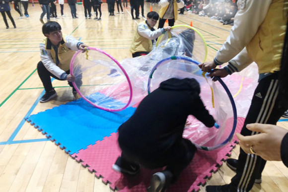 À̹ø ´ëȸ´Â Èñ¸ÁÆÀ°ú ³ª´®ÆÀÀ¸·Î ³ª´µ¾î 1,2ºÎ·Î ÁøÇàµÆÀ¸¸ç 1ºÎ¿¡¼´Â ÆÇµÚÁý±â, 2ÀÎ3°¢, ´ÙÇÔ²² ¼ÕÀâ°í, ¾îµÒ¼ÓÀÇ ¿Üħ, ´Üü³ó±¸°¡ ÁøÇàµÇ¾ú´Ù. ¾îµÒ¼ÓÀÇ ¿ÜħÀº ¿ÃÇØ óÀ½ ÁøÇàµÇ´Â °ÔÀÓÀ¸·Î ´«À» °¡¸° ÇлýµéÀÌ º¸È£ÀÚÀÇ ¸ñ¼Ò¸®¿Í ¾Ç±â¼Ò¸®¸¸À» µè°í ¸ñÇ¥Á¡¿¡ µµ´ÞÇÏ´Â °ÔÀÓÀÌ´Ù. ÀÌ °ÔÀÓ¿¡¼´Â ¼·Î¸¦ ½Å·ÚÇϰí ÀÇÁöÇÏ¸ç ´Þ¸®´Â ÈÆÈÆÇÑ Àå¸éÀÌ ¿¬ÃâµÇ¸ç ¶ß°Å¿î È£ÀÀÀ» À̲ø¾î ³Â´Ù.