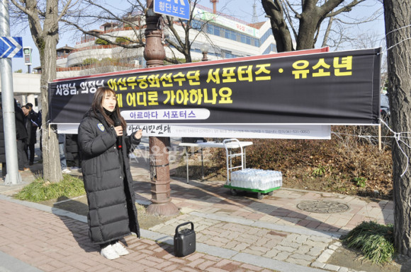 ¾Æ»ê½ÃÃ౸Çùȸ Á¶Àμº ȸÀåÀº ¡°Âü´ãÇÏ°í ¹«°Å¿î ¸¶À½À¸·Î ÀÌ ÀÚ¸®¿¡ ¼¹´Ù¡±¸ç ¡°°æÂûûÀÇ ÀϹæÀû ¼±¼ö¼ö±Þ Áß´Ü¿¡ ¹«±ÃÈÇÁ·ÎÃ౸´ÜÀÇ Á¸ÆóÀ§±â¸¦ ´õ ÀÌ»ó ¹¬°úÇÒ ¼ö ¾ø´Â ½ÃÁ¡À¸·Î ÀÌÁ¦´Â °æÂûû¸¸ ¿ø¸ÁÇÒ ¼ö ¾ø´Ù. ½ÃÀå´Ô°ú ¾Æ»ê½ÃÀÇȸÀÇ ¸¶Áö¸· °á´ÜÀÌ ÇÊ¿äÇÏ´Ù¡±°í ÇÇ·ÂÇß´Ù.