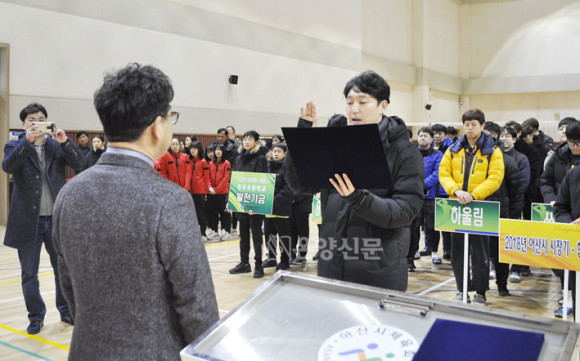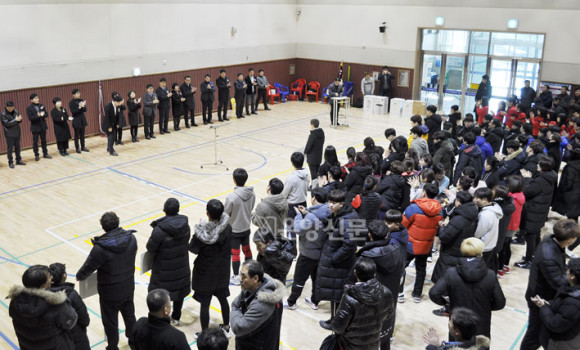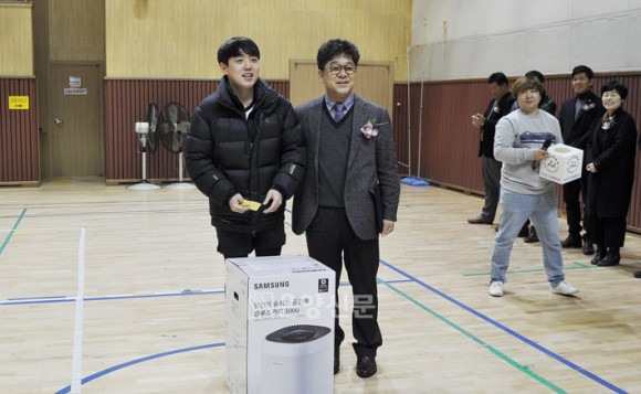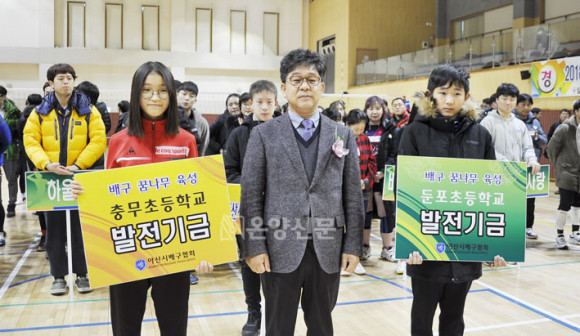 À̳¯ °³È¸½Ä¿¡¼´Â ¾Æ»ê½Ã¹è±¸Çùȸ À̺´Ãµ ȸÀåÀÌ Àڶ󳪴 À¯¼Ò³âµé¿¡°Ô ¹è±¸ÀÇ ²Þ°ú Èñ¸ÁÀ» °®°í ¿½ÉÈ÷ ¿îµ¿¿¡ Àü³äÇϰí ÀÖ´Â µÐÆ÷ÃÊ¿Í Ãæ¹«ÃÊ ¹è±¸¼±¼ö´Ü¿¡ ¹ßÀü±â±ÝÀ» Àü´Þ ¿¤¸®Æ® üÀ°À» À°¼ºÇϴµ¥ º¸ÅÆÀÌ µÇ°Ô ÇßÀ¸¸ç, °ø±âûÁ¤±â µî ǪÁüÇÑ °æÇ°À» °³È¸½Ä¿¡ Âü¼®ÇÑ ¼±¼öµé¿¡ Ãß÷À» ÅëÇØ ¼±»çÇß´Ù.