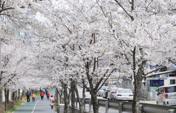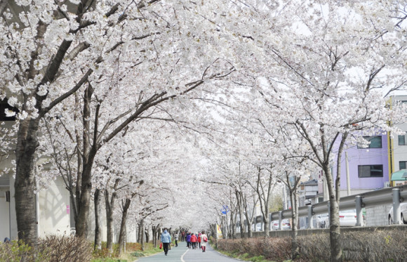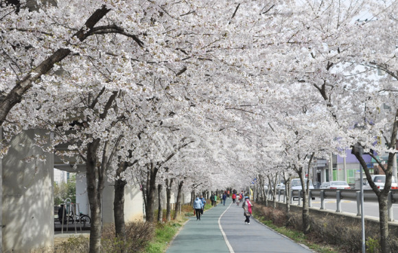 ÀåÇ×¼±ÀÌ ±³°¢ ¾Æ·¡ Á¶¼ºµÈ »êÃ¥·Î¿¡ º¢²ÉÀÌ ¸¸°³ÇÏ¿© ¿À°¡´Â ½Ã¹ÎµéÀÌ º½ Á¤Ã븦 ¸¸³£Çϰí ÀÖ´Ù. ±¸ ±¼´Ù¸®¿¡¼ºÎÅÍ ¹æÃൿ ½ÅÁ¤·Î¿Í ¸¸³ª´Â ÁöÁ¡±îÁö ±³°¢À» µû¶ó Á¶¼ºµÈ ÀÌ º¢²É ÅͳÎÀº Á¶¼ºµÈÁö ¿À·¡µÈ ÆíÀº ¾Æ´ÏÁö¸¸ »êÃ¥·Î ¾ç ¿· º¢³ª¹«°¡ ¿À°¡´Â ½Ã¹ÎµéÀÇ ¸Ó¸® À§Çؼ ÅͳÎÀ» ÀÌ·ï Àå°üÀ» º¸À̰í ÀÖ´Ù.