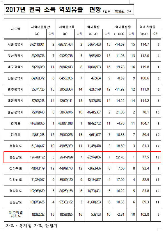 µµ °ü°èÀÚ´Â ¡°2017³â ±âÁØ Ãæ³²ÀÇ Áö¿ª³»ÃÑ»ý»êÀº 124Á¶ 4õ¾ï ¿øÀ¸·Î Àü±¹ ÃÖ»óÀ§ ¼öÁØÀ̳ª, ¼Òµæ ¿ª¿ÜÀ¯Ãâ ¿ª½Ã 27Á¶ 9õ¾ï ¿ø(22.48%)À¸·Î ½É°¢ÇÑ ¼öÁØÀ» º¸¿´´Ù¡±¶ó¸ç ¡°¿ª¿ÜÀ¯ÃâÀ» ÃÖ´ëÇÑ ¸·°í, Áö¿ª ³» ¼Òºñ ÃËÁøÀ» ÅëÇÑ ¼Ò»ó°øÀÎ ¸ÅÃâ Áõ´ë µîÀ» À§ÇØ Áö¿ªÈÆó¸¦ Á¶±â¿¡ Á¤Âø½Ã۰í Ȱ¼ºÈ ½Ãų ¼ö ÀÖµµ·Ï Çϰڴ١±°í ¸»Çß´Ù.