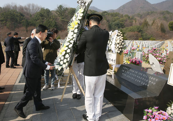 µµ ½Ç¡¤±¹Àå µî 14¸í°ú ÇÔ²² ±¹¸³´ëÀüÇöÃæ¿øÀ» ãÀº ¾ç Áö»ç´Â ÇöÃæÅ¾¿¡ ÇåÈ¡¤ºÐÇâÇϰí, õ¾ÈÇÔ ¹¦¿ªÀ» ã¾Æ ÀÚ½ÅÀÇ »ý¸íÀ» Èñ»ýÇϸç Á¶±¹°ú ±¹¹ÎÀ» ÁöÄѳ½ È£±¹¿µ·ÉÀ» ¾ÖµµÇÏ°í ³ÌÀ» ±â·È´Ù.