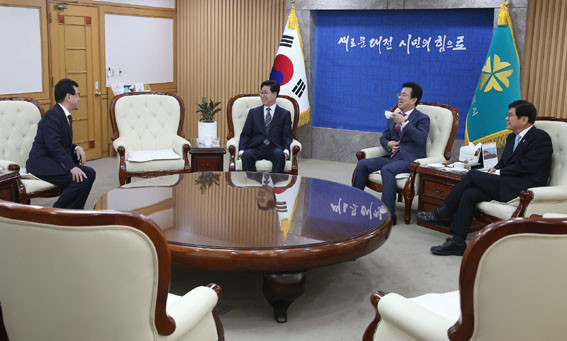 ¾ç½ÂÁ¶ Áö»ç´Â 3¿ù 26ÀÏ ´ëÀü½Ãû ÁßȸÀǽǿ¡¼ ÇãÅÂÁ¤ ´ëÀü½ÃÀå, ÀÌÃáÈñ ¼¼Á¾½ÃÀå, À̽ÃÁ¾ ÃæºÏµµÁö»ç¿Í ¡®ÆòÅá¿À¼Û º¹º¹¼± õ¾È¾Æ»ê Á¤Â÷¿ª ¼³Ä¡¡¯, ¡®´ëÇѹα¹ Ã౸Á¾ÇÕ¼¾ÅÍ Ãµ¾È À¯Ä¡¡¯¿Í °ü·ÃÇØ ÃæÃ»±Ç °øµ¿°ÇÀǹ®À» ¹ßÇ¥Çß´Ù.