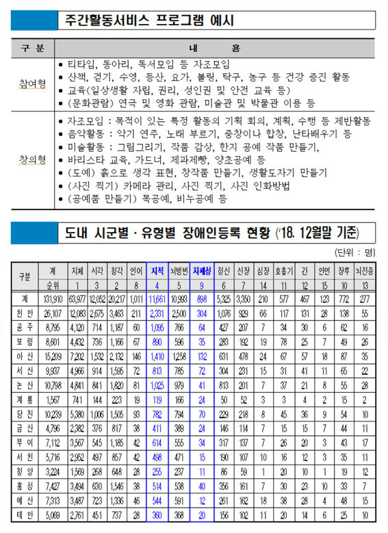 ¾ÕÀ¸·Î ¼ºÀÎ ¹ß´ÞÀå¾ÖÀε鵵 µ¹º½°ú °¢Á¾ Ãë¹Ì Ȱµ¿ ¼ºñ½º¸¦ Á¦°ø¹ÞÀ» ¼ö ÀÖ°Ô µÆ´Ù. Ãæ³²µµ´Â ¼ºÀÎ ¹ß´ÞÀå¾ÖÀο¡ ´ëÇÑ ÁÖ°£(³·) Ȱµ¿ ¼ºñ½º¸¦ ÀÌ´ÞºÎÅÍ ¼øÂ÷ÀûÀ¸·Î ½Ç½ÃÇÑ´Ù°í 5¿ù 1ÀÏ ¹àÇû´Ù.