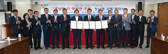 À̸¦ À§ÇØ µµ´Â 8ÀÏ µµÃ» »óȲ½Ç¿¡¼ ¾ç½ÂÁ¶ Áö»ç¿Í ¿À¼¼Çö ¾Æ»ê½ÃÀå, ±ÇÇõ¹® Ãæ³²°³¹ß°ø»ç »çÀå µîÀÌ Âü¼®ÇÑ °¡¿îµ¥ ¡®ÀúÃâ»ê ±Øº¹, ½ÅÈ¥ºÎºÎ ÁÖ°Å ¾ÈÁ¤À» À§ÇÑ Ãæ³²Çü ´õ ÇູÇÑ ÁÖÅà ù »ç¾÷ ½ÃÇà Çù¾à¡¯À» ü°áÇß´Ù.